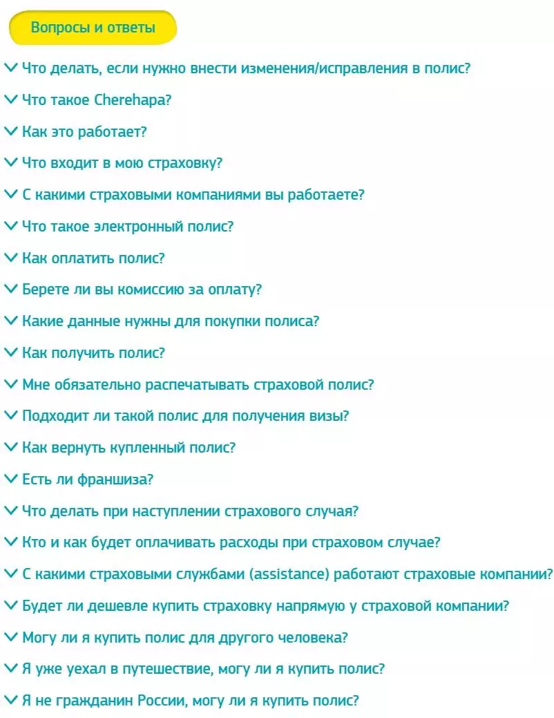 Cherehapa (Черехапа) — это онлайн сервис по выбору и покупке страховки для путешествия. Сервис помогает подобрать оптимальный вариант туристического страхования, сравнить предложения крупнейших компаний и купить электронный полис в считанные минуты. По-другому, это агрегатор страховых компаний, где вы можете выбрать страховку на подходящих вам условиях. Такие агрегаторы мы уже знаем и они популярны. Это aviasales.ru, hotelscombined.com, hotellook.ru.
