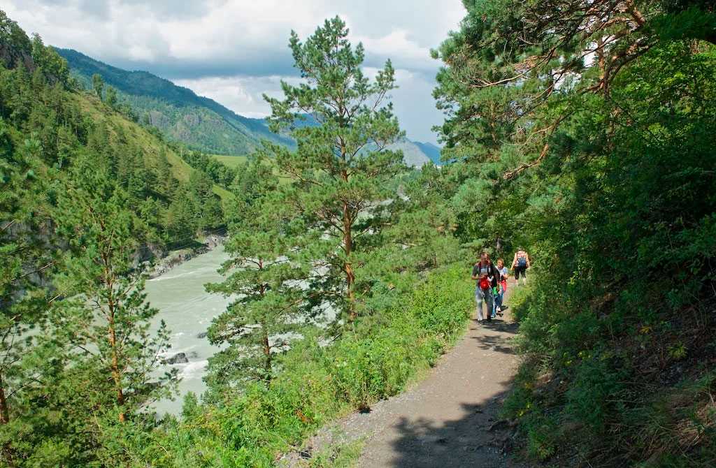 Сегодня же Козья тропа, бегущая вдоль крутого скалистого берега Катуни, целиком и полностью принадлежит туристам, полюбившим это место неспроста. Во время прогулки по тропе перед вами открываются чудесные виды – на живописное ущелье, по которому протекает Катунь, на слияние Катуни с Чемалом, на двугорбую гору с символичным названием Верблюд.