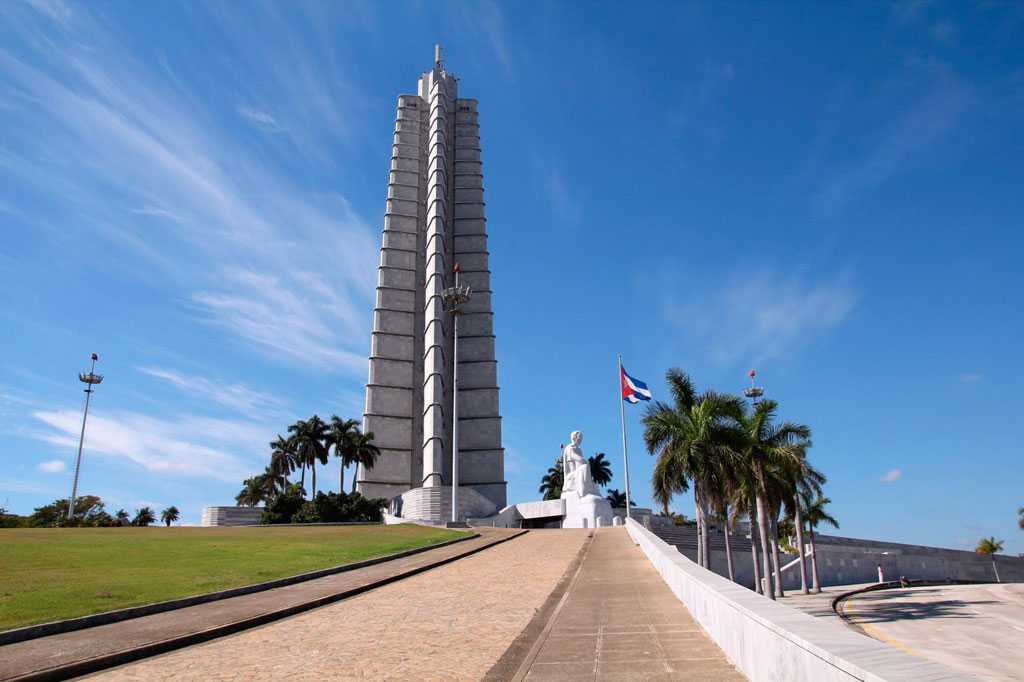Площадь Революции вмещает миллион человек, которые собираются сюда на военные парады. Именно здесь Фидель произносил свои знаменитые шестичасовые речи.