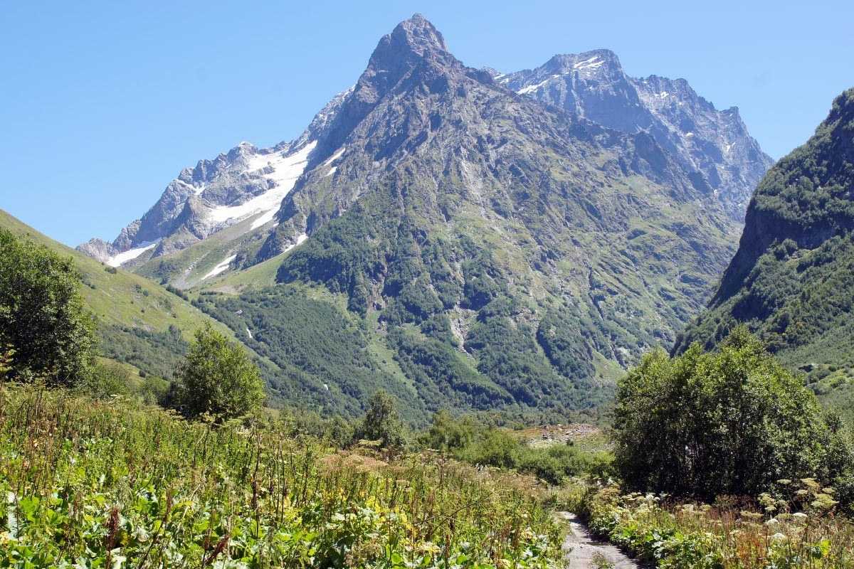 Самой высокой из вершин является Домбай-Ёльген. Его другое имя — Домбай-Ульген. Высота этого кавказского гиганта составляет 4046 метров над уровнем моря. Круглый год вершина горы покрыта снегом. На местном наречии название означает «убитый зубр», ведь когда-то повстречать в долинах могучего зверя было привычным делом. До наших дней, как напоминание о тех временах, сохранилось лишь название горы. Неподалеку от Домбайской поляны есть ущелье, по которому протекает река Птыш.