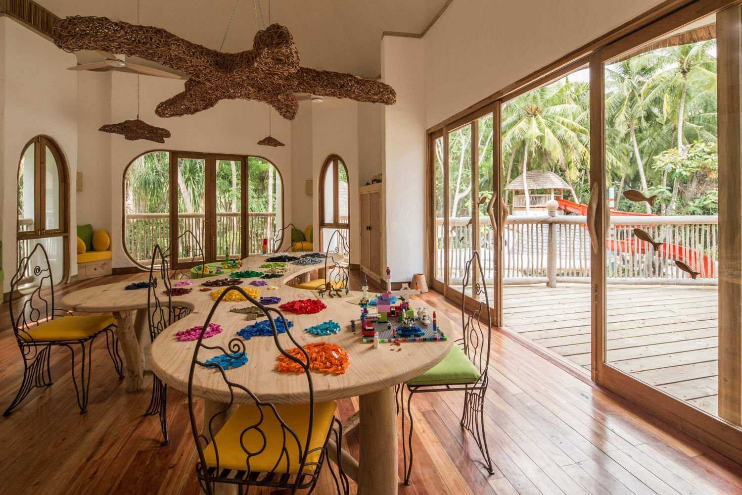 - Разнообразная детская программа меняется каждый день. Пример детской программы: украшают торты, катаются на банановой лодке, выпекают пиццу, бегают с воздушными змеями, возводят замки из песка, раскрашивают ракушки и кокосы. Морской мир деткам открывает биолог. Устраивают талант-шоу, учат изготавливать мальдивские сувениры и даже говорить на языке местных жителей.