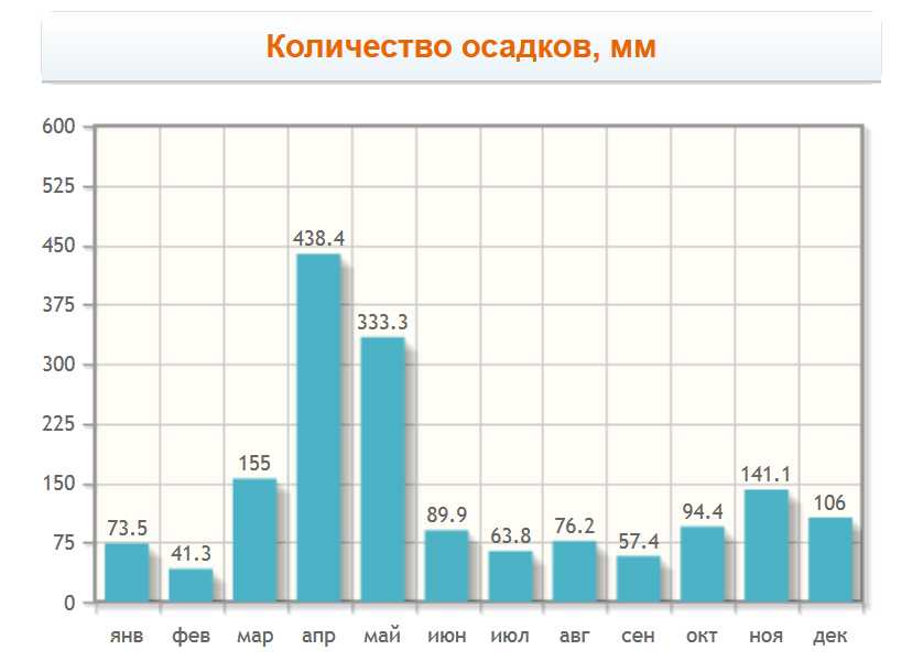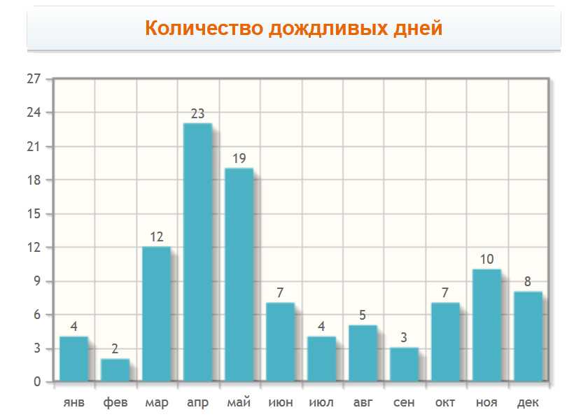 Количество дождливых дней по месяцам