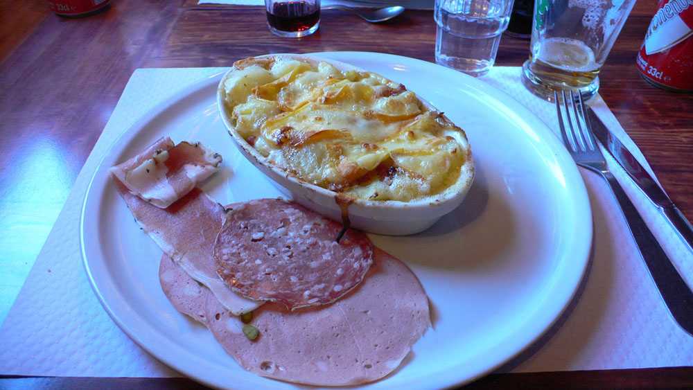 Тартифлет – еще один яркий представитель французской кухни. Это очень сытное блюдо. В его состав входит картофель, бекон и лук, посыпанный сыром Реблёшон. Легенда гласит, что с бедных крестьян брали налоги за удои. Чем больше молока дала корова — тем больше платить. Хитрый народец быстро приспособился и начал доить коров лишь наполовину, а после проверки додаивать до конца. Из остатков молока делали сыр Реблёшон. Количество сыра было таким же большим, как нежелание платить налоги. Нужно было его куда-до девать и в 1980 году придумали одноименное блюдо.