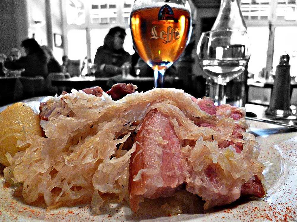 Эльзаский шукрут – это вам не шутки. Пока латинский и германские миры сотрясали округу конфликтами, в которых периодически доставалось Эльзасу, местные жители плюнули на всю эту политику и занялись обустройством хозяйства. В результате у эльзасцев просторные дома, цветущие деревни и шикарная национальная кухня. Шукрут – это блюдо из квашеной капусты, колбас и свинины, кто-то его готовит с рисом, кто-то с картофелем. Есть вариант со свежей капустой, но на мой взгляд он менее вкусный