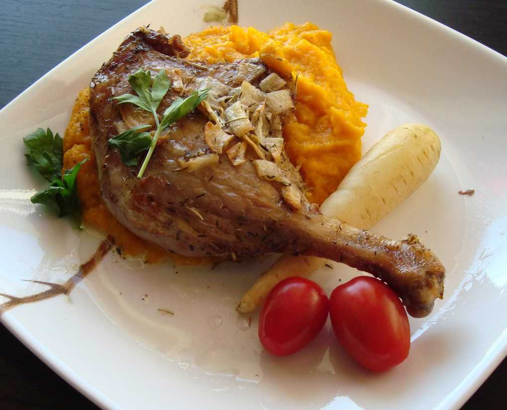 Это блюдо, звучащее на французском языке очень мелодично «confit de canard» (кстати, буква t в конце не читается!), тоже имеет давнюю историю. Правда, в старину французы готовили «Конфи» как консервацию на запас. Даже без закатки утиные ножки, приготовленные по этому рецепту, можно хранить в холодильнике очень долго. Это один из самых запрашиваемых в сети рецепт с фото французской кухни. В домашних условиях основным продуктом может выступать мясо любой домашней птицы или крольчатина.