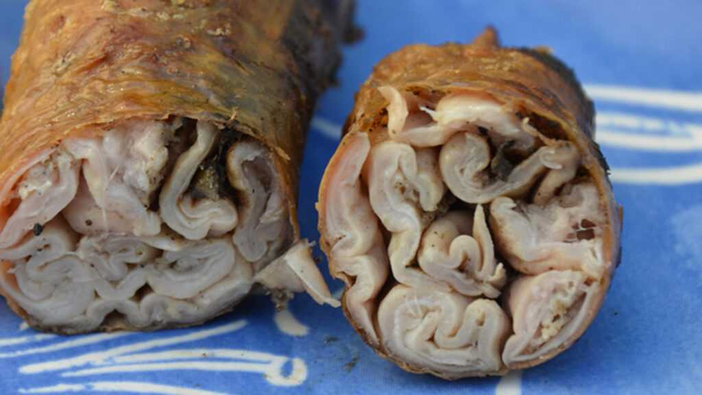 Начнём с традиционной французской колбасы. Andouillette — это разновидность колбасы, которую готовят из свинины и телячьих кишок. Родом из восточного города Труа. Блюдо часто приправляют перцем и луком, однако к нему можно добавить множество других приправ. Обычно его подают с картофельным пюре или картошкой фри. У него очень резкий запах, некоторые даже описывают его как запах мочи. Тем не менее, большинство людей действительно наслаждаются вкусом этого деликатеса.