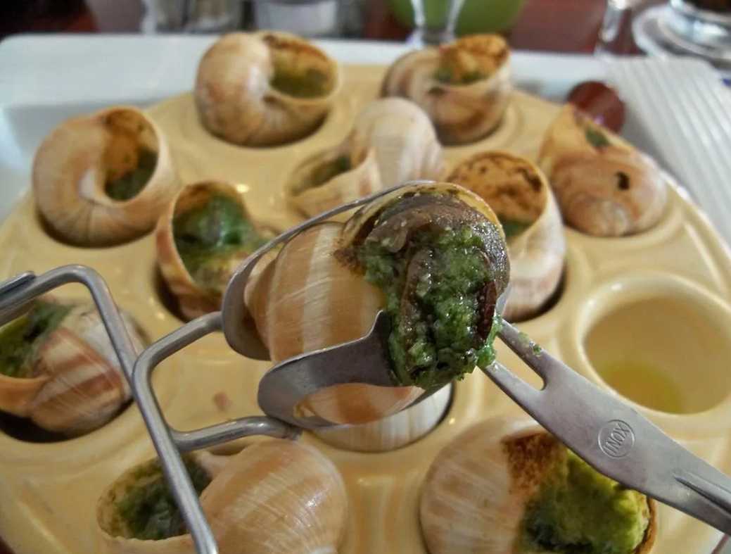 Еще одна французская кулинарная экзотика — улитки и двустворчатые моллюски. Причем некоторые виды ракушек принято употреблять в сыром виде. Замечательное французское блюдо — запеченные виноградные улитки с чесноком и зеленью.