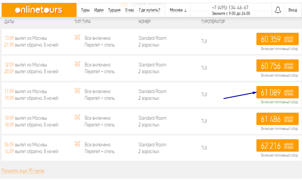 - Конечная стоимость тура зависит от активности потенциальных клиентов. Если спрос высокий, то и ценник растет.