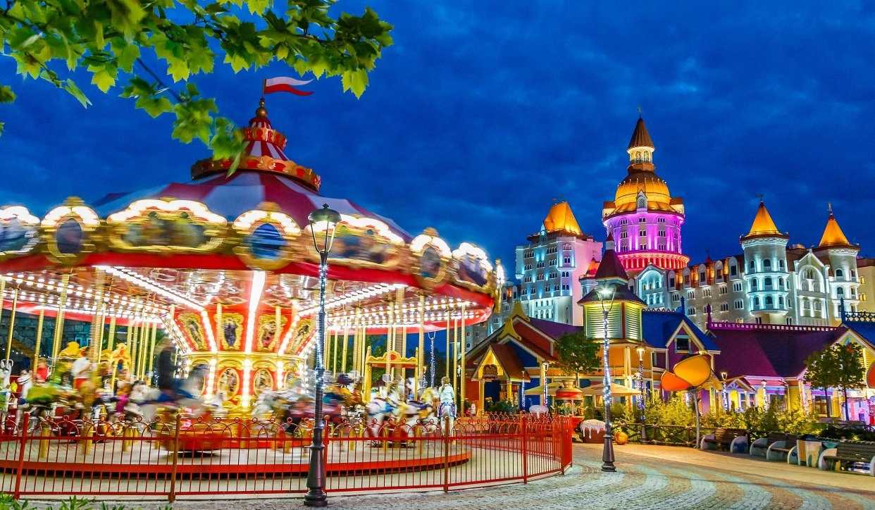 Огромный пар развлечений, разделенный на тематические зоны. Здесь есть дельфинарий, контактный зоопарк, совариум, колесо обозрения, комната иллюзий и 23 аттракциона – семейных, водных, экстремальных, скоростных и т.д.