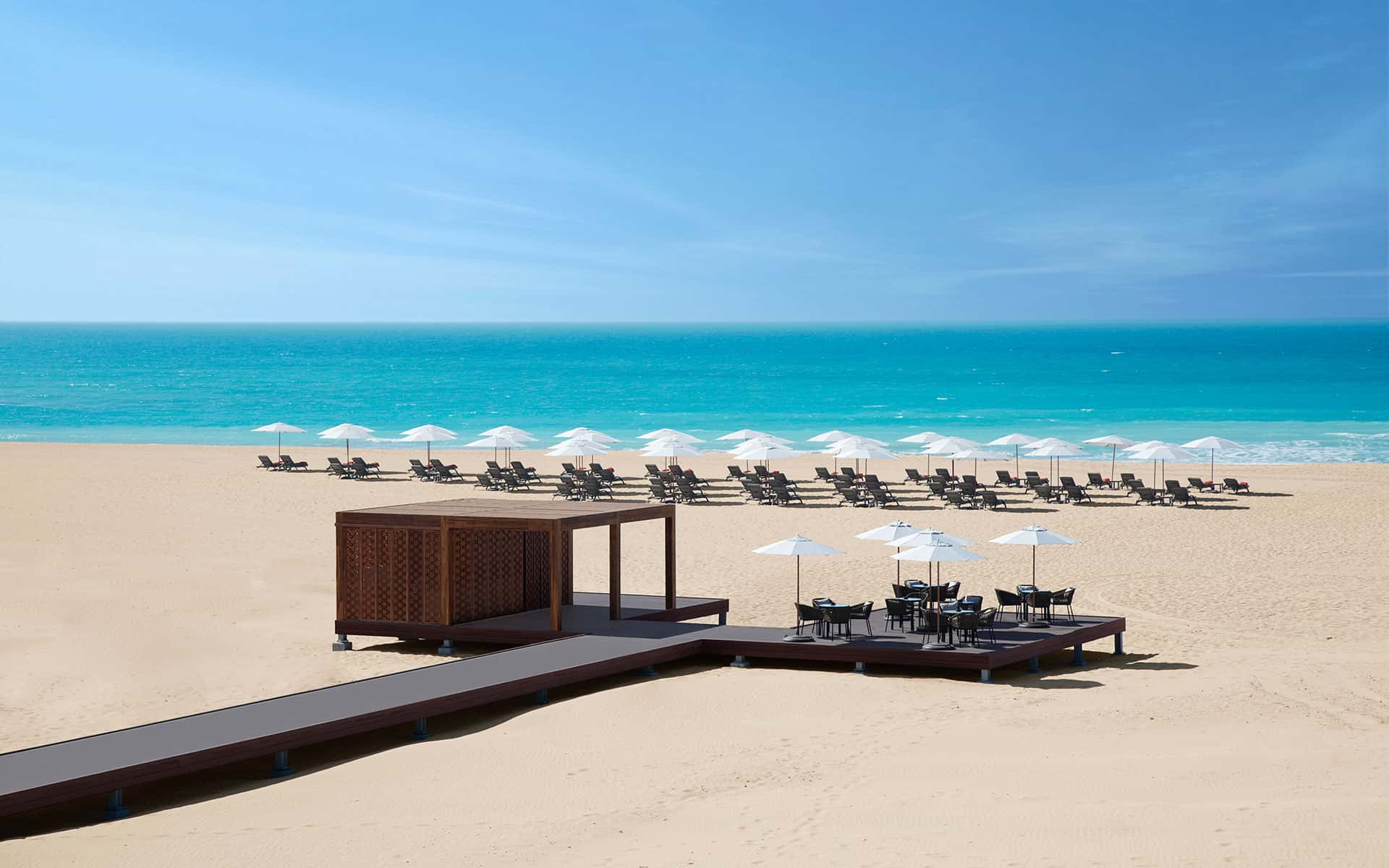 - The St. Regis Abi Dhabi – отель с пятью звёздами и личным пляжем, где установлены зонты, мягкие шезлонги, кресла за столиками с шикарным видом на морской залив. Сюда услужливые официанты доставляет бесплатные напитки и мороженое. При желании вас накормят вкусным ужином.