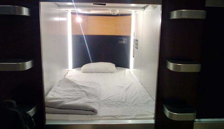 Кстати, впервые попробовал капсульные отели. Ниже на картинке можете видеть одну из таких капсул. Не сказать, чтобы был в восторге, но при необходимости, остановился бы еще раз. Цена такая же, как и в общем номере в хостеле.