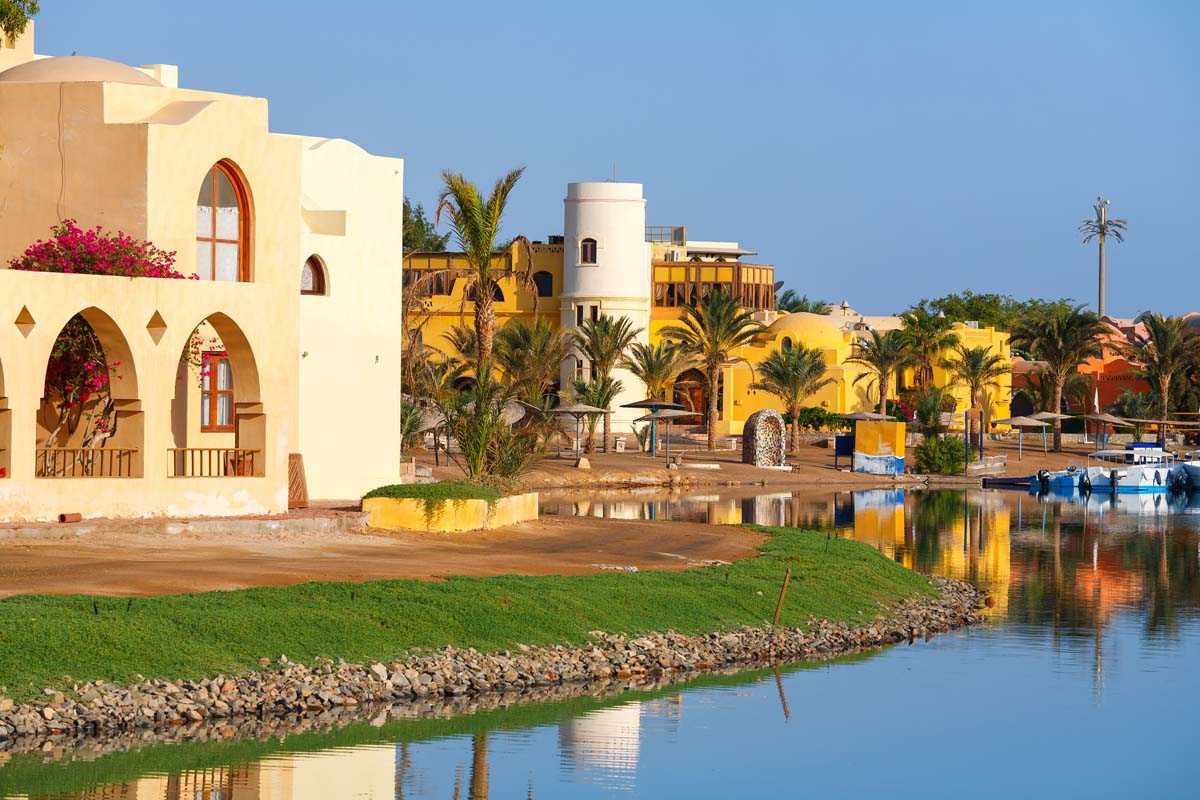 - Эль-Гуна – еще более жаркий регион, чем Хургада, но менее, чем Марса-Лама. Летом стоит сильная жара +33°, зато зимой воздух охлаждается всего до +22-24°. Море в любой сезон остается теплым и чистым, не остывая больше чем до +24-26°. Туристов привлекает в Эль-Гуне то, что воду в прибрежной зоне постоянно очищают специальными установленными фильтрами.