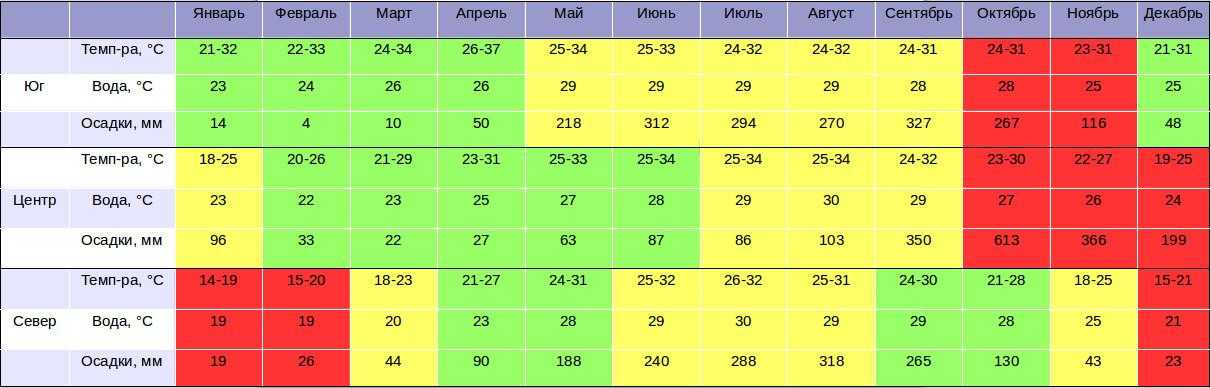 Спад туристического сезона, происходящий с конца сентября по середину января, обусловлен в первую очередь ухудшением погодной ситуации. Главным препятствием беззаботного отдыха становятся частые и обильные дожди, а также штормящее море. Правда, тут нужно добавить, что климат от сезона к сезону меняется, и на 100% сказать, что погода будет ужасной, не могут даже синоптики. Так, в ноябре 2014 года пресловутый сезон дождей так и не начался. А в 2013 году в том же месяце, наоборот, заливало каждый день. Но одно доподлинно известно: уровень цен в это время стремительно падает. Это особенно выгодно тем, кто приезжает сюда на длительный срок в отпуск или для поиска работы. Риск тайфунов и цунами, конечно, есть, но в данном регионе он очень и очень мал.