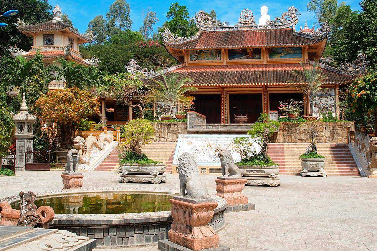 Само по себе сооружение весьма эффектно, но в историю оно вошло по весьма печальному поводу. Здесь произошло самосожжение буддистских монахов, выразивших таким способом протест против экспансии США. Однако туристов также влечет возможность полюбоваться на статую Будды Амитабхи высотой 14 м, к которой ведут 152 ступеньки каменной лестницы.