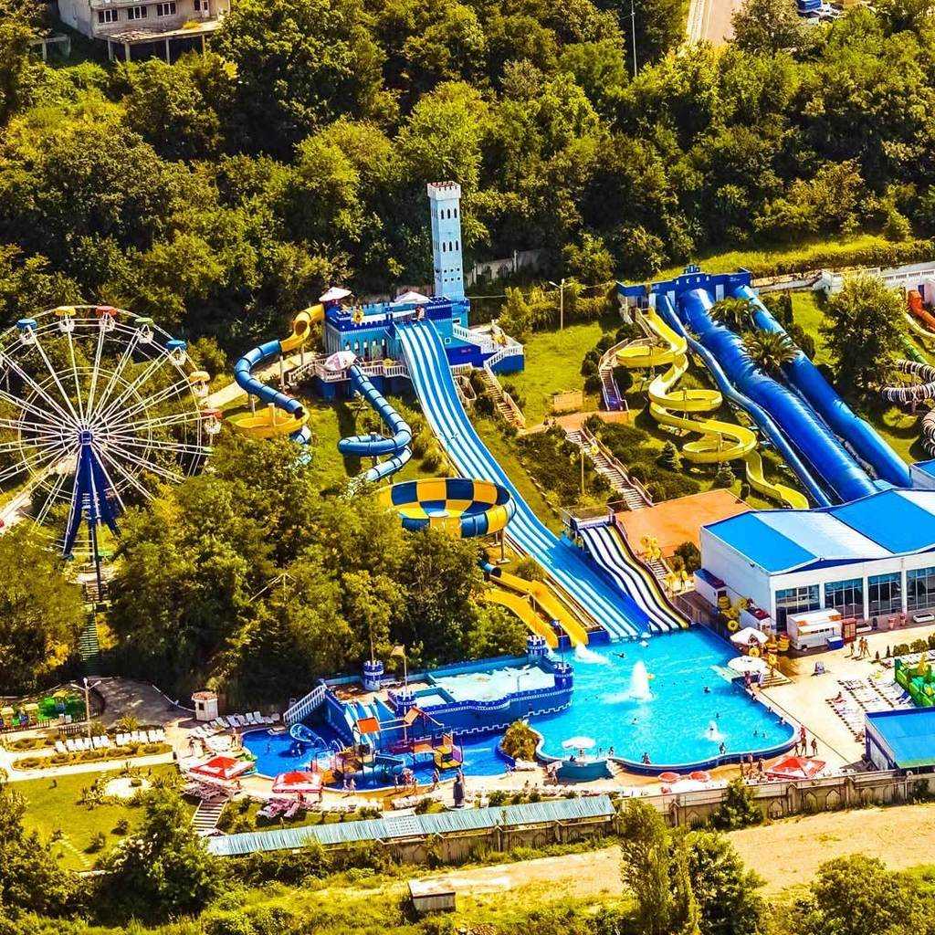 В нем восемь экстремальных горок, а еще бассейны с волнами, «сплав по реке», джакузи и аттракционы для самых маленьких посетителей. Чтобы всем было весело, гостей занимает веселая команда аниматоров.