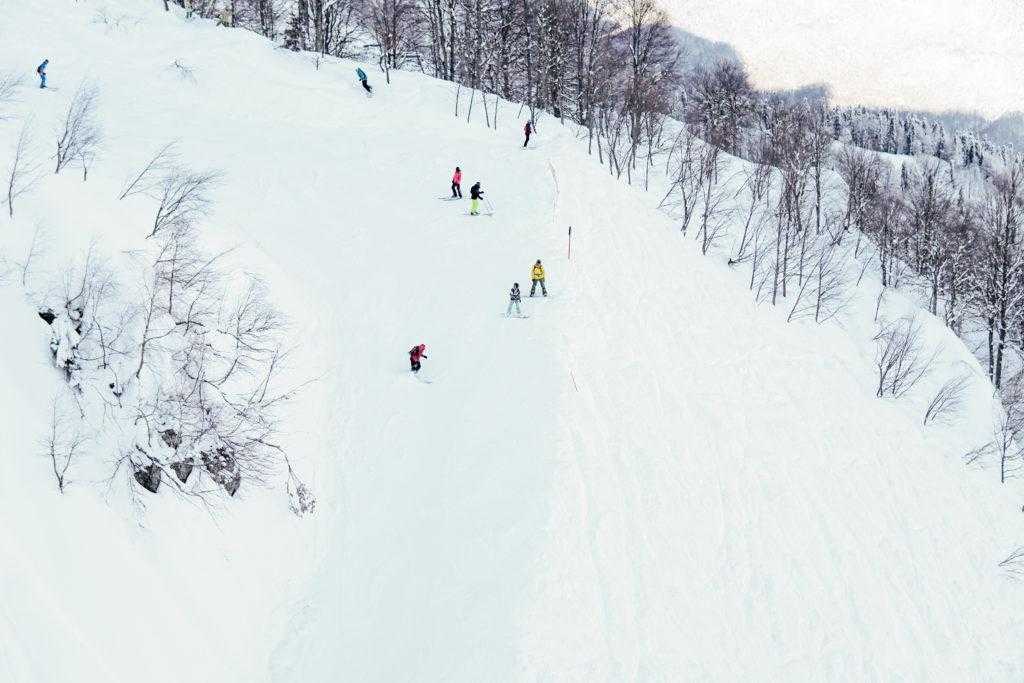 Трассы: всего три — синяя, зеленая и красная. Зато для внетрассового катания есть более 10 маршрутов разного уровня сложности.