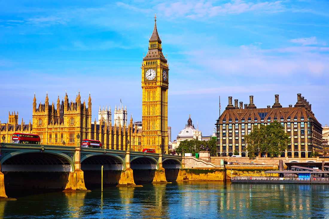 Ничто так не символизирует Лондон, как 97-метровая башня Елизаветы с гигантскими часами и громким колоколом, известная как Биг-Бен. Под ней, вдоль реки Темзы, находится здание Парламента, где заседает британское правительство.